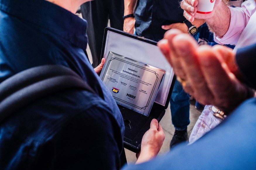 Para marcar a ocasião especial, a fachada recebeu uma logo estilizada “BH400”, além de um totem comemorativo no jardim frontal com a mensagem “400 vezes mais perto de você!”. Na entrada, um painel de fotos históricas resgata momentos importantes da rede, incluindo a imagem emblemática de Pedro Lourenço carregando mercadorias na caminhonete em frente à primeira loja, símbolo da simplicidade e da força que permeiam a história do BH.